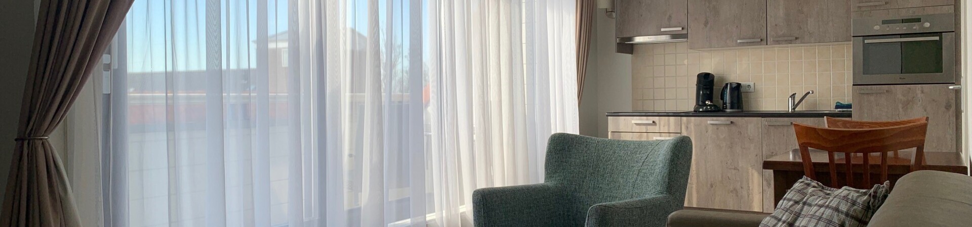 De appartementen bestaan uit een woonkamer met open keuken, een badkamer en een ruime slaapkamer met 2 losse boxspring bedden. Parkeren doet u op ons parkeerterrein verderop in Domburg aan de Traverse 3. U parkeert hier op een gereserveerde plaats.