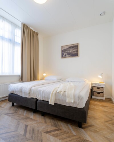 De woning bestaat uit een woonkamer, keuken, badkamer, twee slaapkamers met twee persoonsbedden. Parkeren doet u op eigen terrein in de Ewout van Dishoeckstraat op slechts 200 meter van de woning.